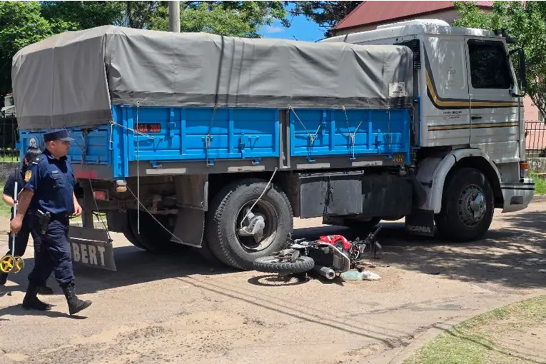 Por motivos que tratarán de establecerse en forma fehaciente, colisionaron un camión y una motocicleta en la intersección de calles Hipólito Yrigoyen y Sarmiento de la localidad de Villaguay.